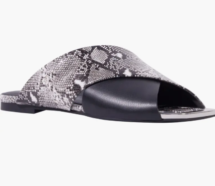 Slip into effortless style with these Katy Perry snake print slides. Featuring a bold, eye-catching pattern and a comfortable slip-on design, these slides transition seamlessly from poolside to casual outings. The cushioned footbed provides all-day wearability, while the sleek silhouette keeps your look polished. Perfect for anyone seeking a statement piece that doesn't compromise on comfort.