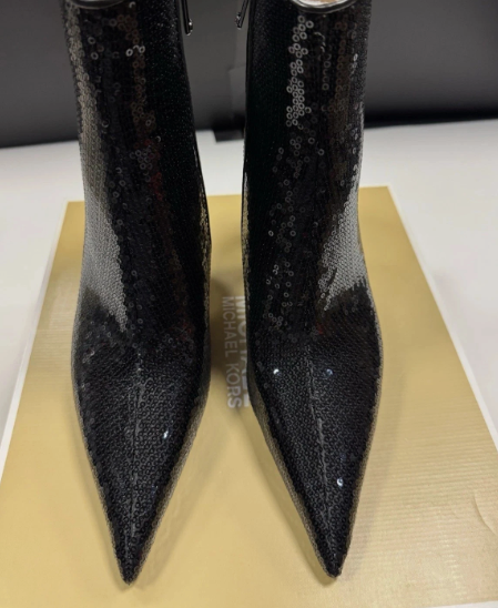 Michael Kors Luna Sequin Boots deliver sophisticated sparkle with everyday wearability. These size 8 boots feature all-over sequin detailing that catches light beautifully, paired with a practical low heel for comfort during extended wear. The elegant design transitions seamlessly from evening events to upscale casual occasions. Perfect for those seeking statement footwear that doesn't compromise on walkability or style.